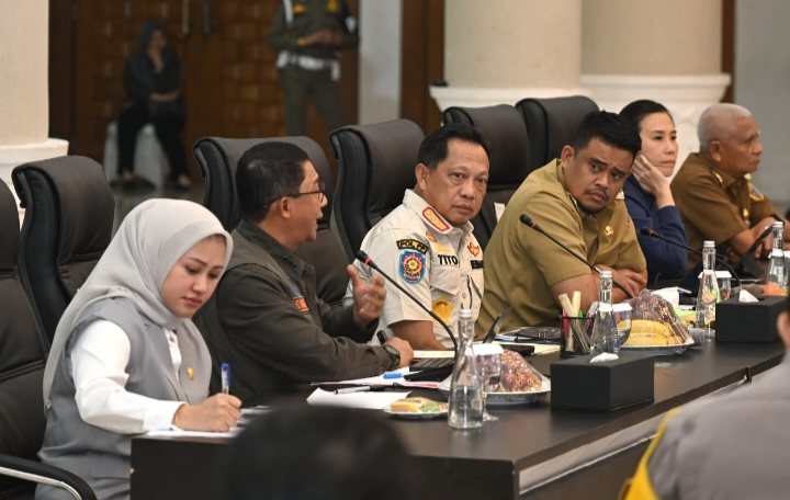 “Kita akan lalukan pergeseran anggaran untuk pemulihan pascabencana, bidang pendidikan kita bagi dua untuk infrastruktur dan SPP gratis di daerah bencana,” kata Gubernur Sumut (Gubsu) Muhammad Bobby Afif Nasution saat rapat koordinasi (Rakor) dengan Ketua Satgas Rehabilitasi Pascabencana Sumatera di Aula Raja Inal Siregar, Kantor Gubernur Sumut, Jalan Diponegoro Nomor 30, Medan, Senin (12/1/2026).