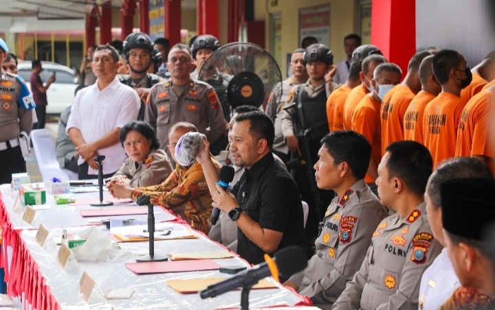 Konferensi pers dipimpin Wakapolda Sumut Brigjen Pol Rony Samtana SIK MTCP dan dihadiri Dirresnarkoba Polda Sumut Kombes Pol Jean Calvijn Simanjuntak SIK MH, Kabid Humas Polda Sumut Kombes Pol Fery Walintukan, para kapolres jajaran, kepala daerah setempat, serta insan pers.