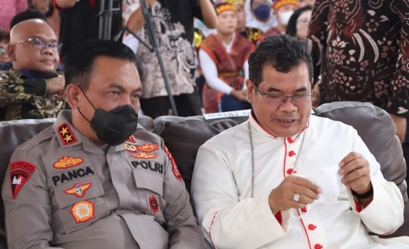 Kapolda Sumut Irjen Pol Drs RZ Panca Putra Simanjuntak MSi, melaksanakan peletakan batu pertama pembangunan pastoran dan aula paroki di Gereja Khatolik Paroki St Antonius Padua, di Kecamatan Tiga Dolok, Kabupaten Simalungun, Minggu (4/12/2022).