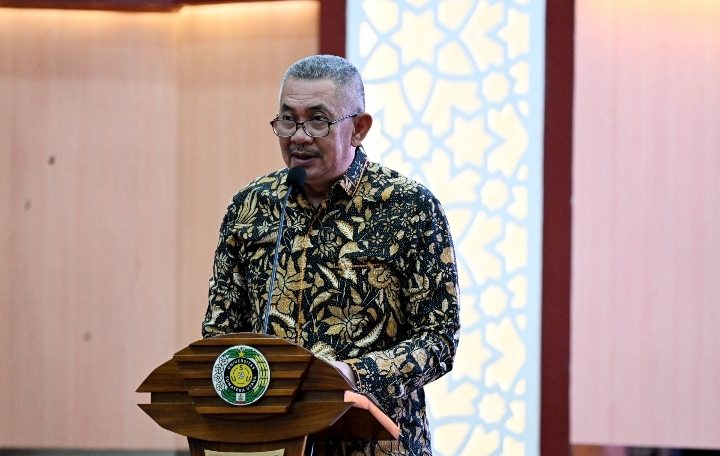 Penjabat (Pj) Sekretaris Daerah Provinsi (Sekdaprov) Sumatera Utara (Sumut) Sulaiman Harahap menghadiri Orasi Ilmiah Dies Natalis ke-45 Fakultas Ilmu Sosial dan Ilmu Politik (FISIP) Universitas Sumatera Utara (USU), Sabtu (8/11/2025), di Aula Gelanggang Mahasiswa USU.
