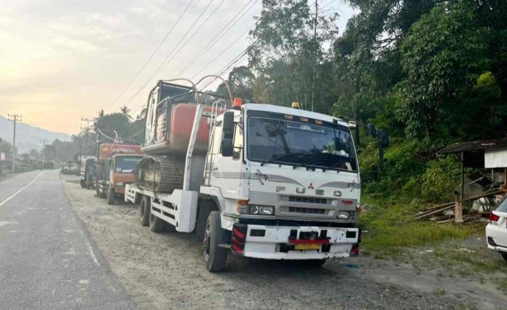 Polda Sumatera Utara mengamankan dua unit alat berat jenis ekskavator yang diduga akan digunakan untuk aktivitas pertambangan emas tanpa izin (PETI) di Kabupaten Mandailing Natal (Madina), Sumatera Utara, Senin (2/3/2026) pagi.