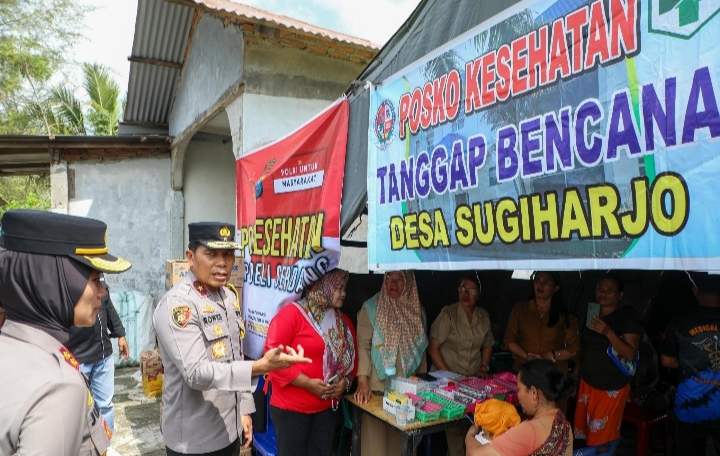 Kepedulian Polda Sumut terhadap warga yang terdampak banjir kembali dibuktikan. Pada Selasa (02/12/2025) pukul 12.00 WIB, Kapolda Sumatera Utara Irjen Pol Whisnu Hermawan Februanto SIK MH yang diwakili oleh Wakapolda Brigjen Pol Rony Samtana SIK MTCP didampingi para Pejabat Utama Polda Sumut, turun langsung meninjau Posko Tanggap Bencana di Desa Sugiharjo, Kecamatan Batang Kuis, wilayah hukum Polresta Deli Serdang.