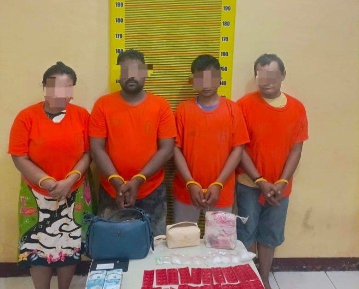 Dalam pengungkapan tersebut, petugas mengamankan empat orang pelaku yang diduga terlibat dalam jaringan peredaran narkoba, masing-masing berinisial SN (54), K (34), V (37), dan B (32).