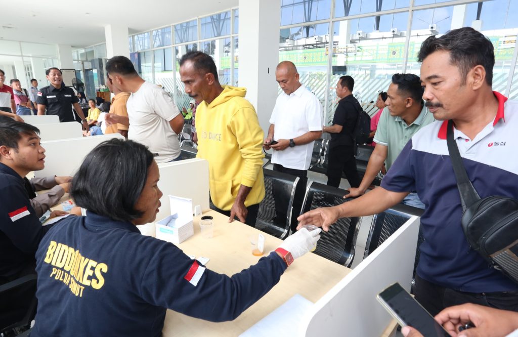 Bersama instansi terkait, Polda Sumut menggelar tes urine secara mendadak terhadap awak moda transportasi, Jumat (5/4/2024).