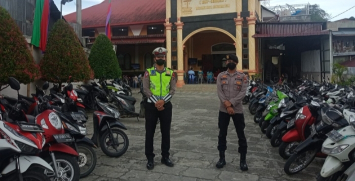 Personil Polres Nias melaksanakan Kegiatan Pengamanan Ibadah Minggu, dengan menempatkan Personil di setiap Gereja seputaran Kota Gunungsitoli, Minggu (24/04/2022).