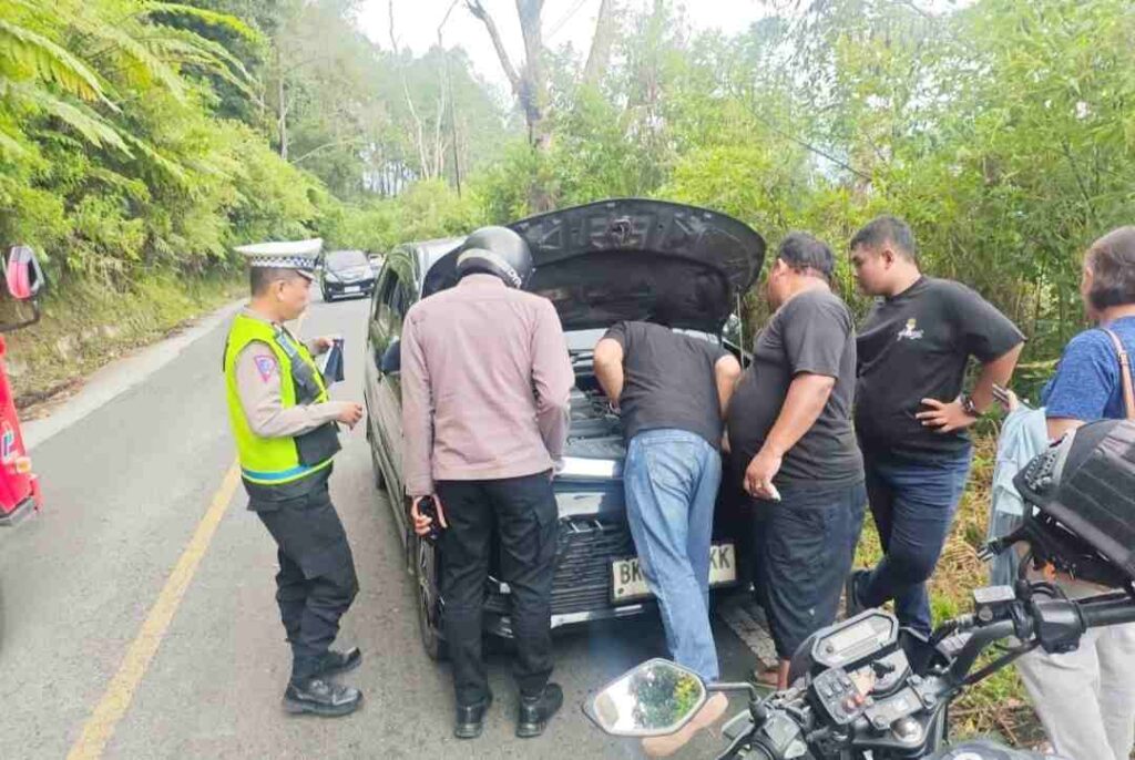 Peristiwa itu bermula saat personel yang bertugas dalam rangka Operasi Ketupat Toba 2026 menerima informasi dari pengunjung terkait adanya satu unit mobil yang mogok di tengah jalan kawasan perbukitan Tele.
