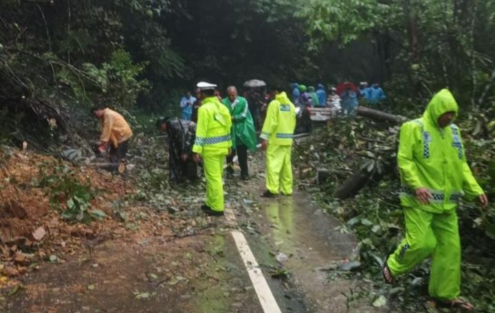 Sejumlah ruas jalan nasional sempat tertutup total, namun beberapa titik sudah berhasil dibuka setelah alat berat diturunkan sejak dini hari.