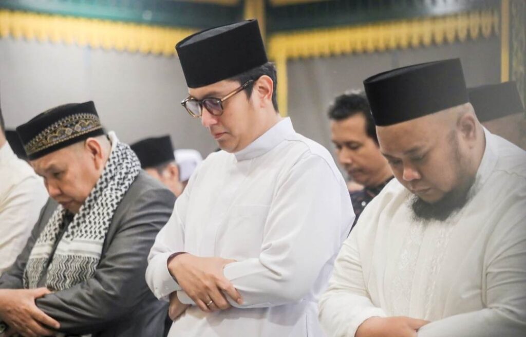 Di malam kelima bulan suci Ramadhan, Wali Kota Medan, Rico Tri Putra Bayu Waas melaksanakan Salat Tarawih bersama jajaran Kecamatan Medan Selayang beserta tokoh agama dan tokoh masyarakat serta ibu-ibu pengajian di Pendopo Rumah Dinas Wali Kota, Minggu (22/2/26) malam.