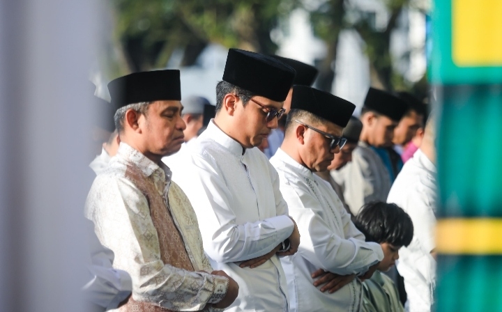 Bersama ribuan masyarakat Wali Kota Medan Rico Tri Putra Bayu Waas melaksanakan Salat Iduladha 1446H di Lapangan Merdeka Medan, 10 Dzulhijjah, Jumat (6/6/2025).