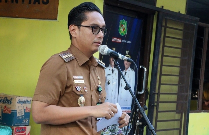 Wali Kota Medan Rico Tri Putra Bayu Waas meninjau lokasi dan mengunjungi korban kebakaran di Jalan Putri Hijau, Kelurahan Kesawan, Kecamatan Medan Barat, Senin (28/7/2025).