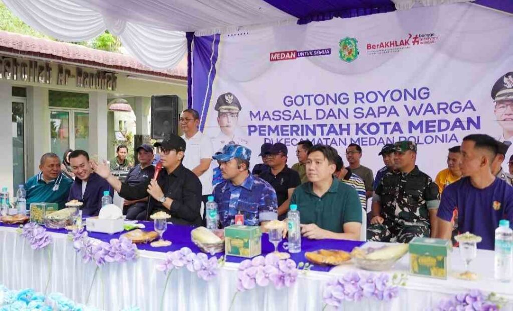Program gotong royong dan sapa warga yang digagas Wali Kota Medan Rico Tri Putra Bayu Waas kembali digelar, Sabtu (14/2/26) pagi di Taman Beringin. Sebelum menyapa warga kegiatan ini diawali dengan gotong royong massal di seputaran sungai Babura mulai dari jembatan jalan Mogonsidi hingga bantaran sungai Taman Beringin.