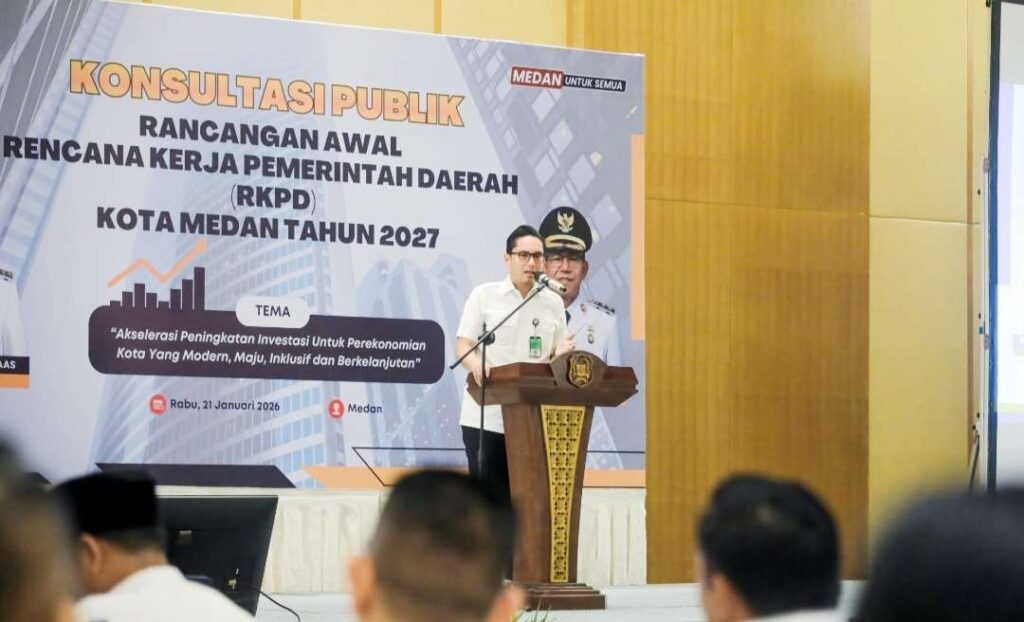 “Ini tentu patut disyukuri, tetapi pertanyaan pentingnya adalah apakah investasi yang masuk benar-benar menggerakkan ekonomi dan menciptakan multiplier effect bagi masyarakat,” Kata Walikota Kota Medan Rico Waas saat membuka Forum Konsultasi Publik Rancangan Awal Rencana Kerja Pemerintah Daerah (RKPD) Tahun 2027 di Hotel Arya Duta, Rabu (21/1/2026).