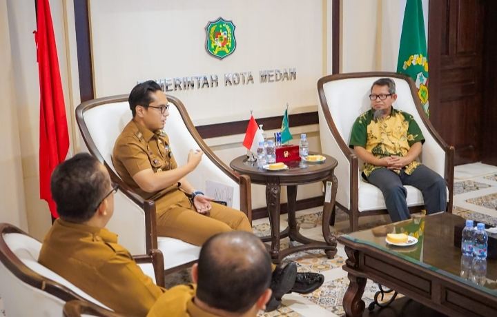 Wali Kota Medan Rico Tri Putra Bayu Waas, menerima audiensi dari Forum Pembauran Kebangsaan (FPK) Kota Medan, di Balai Kota Medan, Senin (22/9/2025).