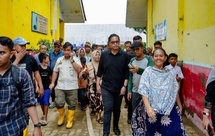 Wali Kota Medan Rico Tri Putra Bayu Waas meninjau proses pembersihan dan perbaikan di SDN 060907, Kelurahan Kampung Baru, Kecamatan Medan Maimun, yang mengalami kerusakan akibat terendam banjir setinggi lebih dari satu meter pada 27 November lalu. Sejumlah ruang kelas, buku pelajaran, hingga perangkat teknologi sekolah rusak setelah terendam air.