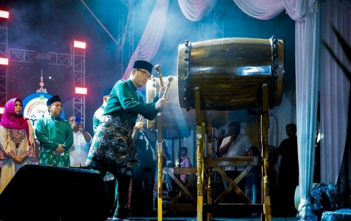 Pemukulan bedug oleh Wali Kota Medan Rico Tri Putra Bayu Waas menandai pembukaan Musabaqah Tilawatil Quran (MTQ) ke-58 Kota Medan 2025 di Jalan Kolonel Yos Sudarso, Kelurahan Kota Bangun, Kecamatan Medan Deli, Sabtu (19/4/2025) malam.