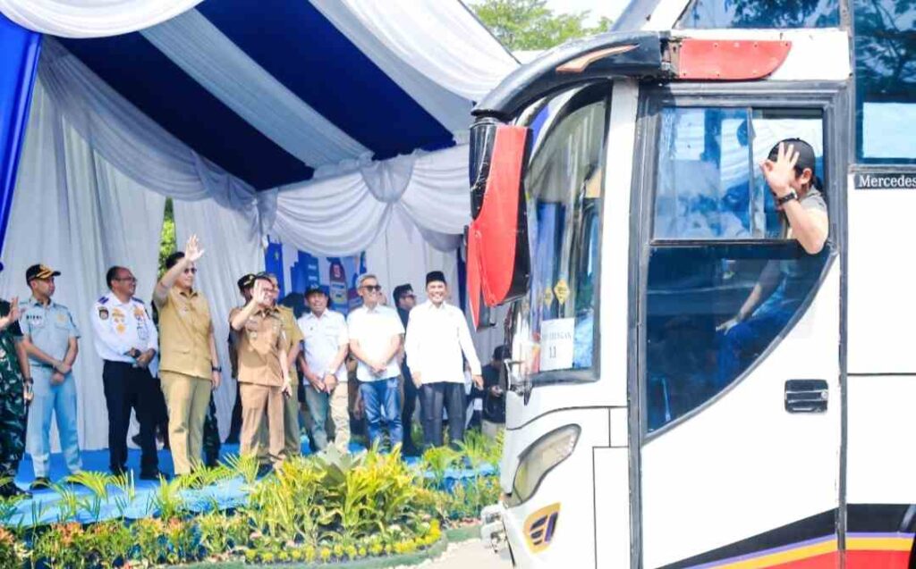Suasana Terminal Amplas tampak meriah dan penuh haru saat Pemko Medan secara resmi melepas ribuan warga dalam program “Mudik Bareng Pemko Medan 2026”. Program yang telah memasuki tahun kelima ini menjadi solusi nyata bagi warga Medan yang ingin pulang kampung dengan aman dan nyaman tanpa biaya.