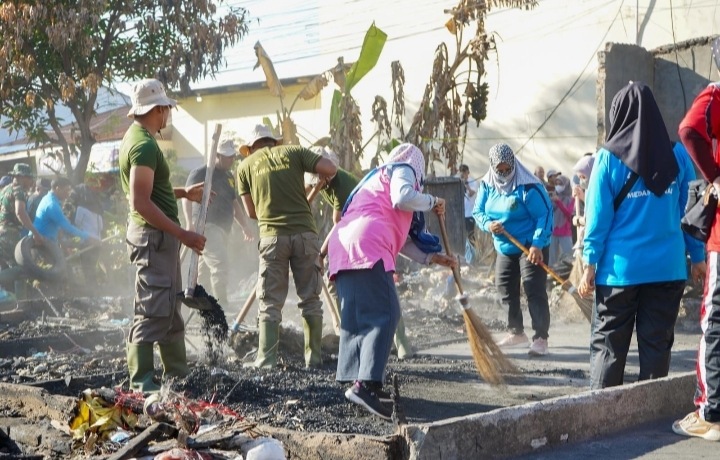 Selain bersih-bersih drainase, gotong royong ini diawali dengan membersihkan rumah warga korban kebakaran yang berada di Jalan Tuba II/Perjuangan, Lingkungan IV, Medan Denai.