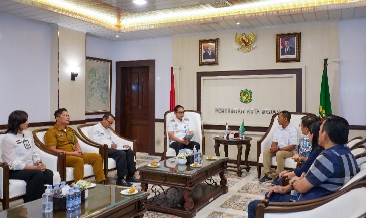Wali Kota Medan Rico Tri Putra Bayu Waas, menerima audiensi Keuskupan Agung Medan di Balai Kota, Rabu (20/8/2025). Dalam pertemuan itu pihak keuskupan menyampaikan soal daya tampung Gereja Katedral Medan, Jalan Pemuda.