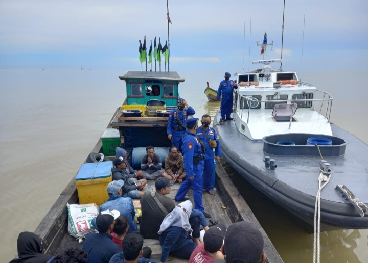 Sat Polair Polres Tanjung Balai bekerjasama dengan Direktorat Polairud Polda Sumut mengamankan kapal yang berisi 15 orang Tenaga Kerja Indonesia (TKI) Ilegal yang pulang dari Malaysia ke Indonesia, Minggu (10/04/2022)