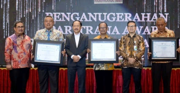 Sekretaris Daerah Provinsi Sumatera Utara (Sekdaprovsu) Arief S Trinugroho menyerahkan penghargaan Paritrana Award kepada para pemenang. Paritrana Award merupakan apresiasi pemerintah kepada pemerintah daerah dan pelaku usaha yang telah mendukung penuh implementasi program Jaminan Sosial Ketenagakerjaan.