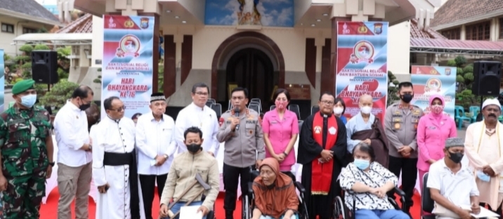 Kepolisian Daerah (Polda) Sumatera Utara (Sumut) menggelar bakti sosial religi dan bantuan sosial di Gereja Katedral, Jalan Pemuda, Kecamatan Medan Maimun, Senin (20/6/2022).