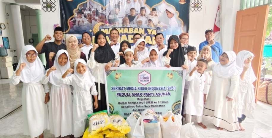 Dalam rangka memperingati Hari Ulang Tahun (HUT) ke-9 Serikat Media Siber Indonesia (SMSI), pengurus SMSI Kota Medan menggelar kegiatan berbagi kebahagiaan dengan anak yatim piatu dan kaum dhuafa di Yayasan Alkahfi Cabang Medan 2, Jalan Pelita III, Kecamatan Medan Perjuangan, Kota Medan, pada momentum bulan suci Ramadhan 1447 Hijriah.