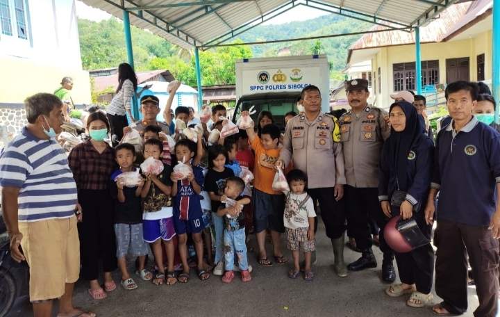Pada Sabtu (06/12/2025), Bhayangkari kembali turun langsung ke lapangan dengan menyalurkan kebutuhan pangan anak berupa makanan ringan dan susu di sejumlah titik pengungsian yang ada di Kota Sibolga.