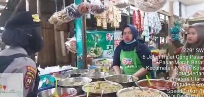 Dipimpin oleh Bripda Syahfrilianti, 12 Personil Polwan menyusuri jalanan kota medan dan berinteraksi langsung dengan masyarakat yang ada di Pasar.