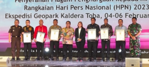 Terlihat di Acara tersebut, Ketua SMSI Provinsi Sumatera Utara terpilih periode Tahun 2022 s/d 2027 Erros J Napitupulu memberikan Piagam penghargaan dalam mensukseskan Rangkaian Hari Pers Nasional (HPN) 2023 Ekspedisi Geopark Kaldera Toba kepada Kapolda Sumut Irjen Pol Drs Panca Putra Simanjuntak MSi yang diwakili Kasubbid Penmas Bidhumas Poldasu AKBP Dr Herwansyah Putra SH MSi.