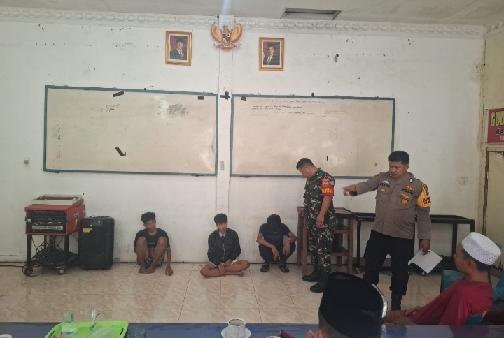 Aksi tawuran antar kelompok remaja di Desa Bangunsari, Kecamatan Tanjung Morawa, Kabupaten Deli Serdang, akhirnya diamankan aparat TNI/POLRI saat melakukan razia. Sejumlah remaja yang terlibat langsung dibawa ke kantor desa untuk proses pembinaan.