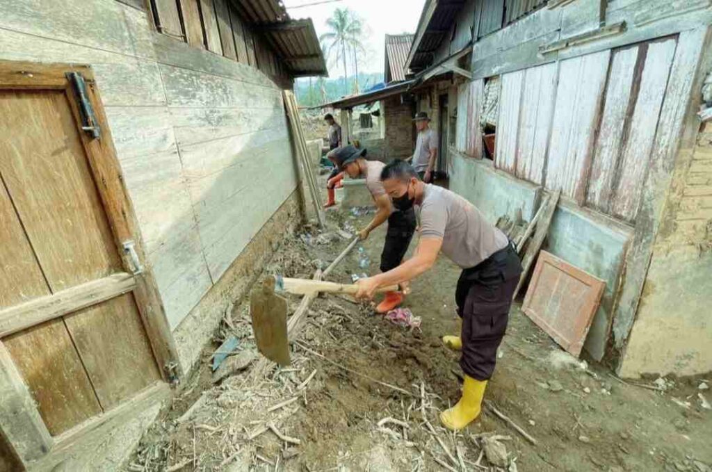 Sebanyak satu Satuan Setingkat Kompi (SSK) yang dipimpin Danki Satgas AKP Tahi Parulian Hutagalung diterjunkan untuk melaksanakan kegiatan pembersihan pasca banjir dan tanah longsor di Kecamatan Batang Toru, Kabupaten Tapanuli Selatan, pada Rabu (21/01/2026).