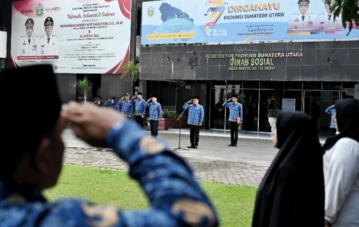 Upacara HKN ini turut dihadiri Kepala Dinas Sosial Sumut Asren Nasution, para Kepala UPTD dan jajaran ASN Dinas Sosial Sumut. (HS)