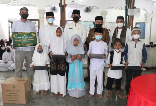 Dalam perhelatan yang juga diisi tausyiah ustad Dr. H.M. Syukri Albani Nasution, Lc., M.A. dan dihadiri segenap pimpinan OPD dan Camat Medan Polonia serta Lurah di Kecamatan itu, jamaah Masjid Taqwa, ibu-ibu pengajian, dan anak-anak yatim piatu tersebut, Bobby Nasution diwakili Sekda menyerahkan bantuan Pemko Medan sebesar Rp 50 juta untuk renovasi Masjid tersebut.