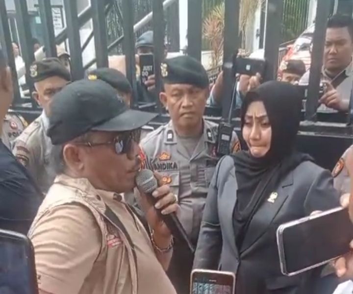Setelah berorasi cukup lama, akhirnya Anggota Komisi 4 DPRD Medan yang juga Ketua BKD DPRD Medan Lailatul Badri menemui para pengunjukrasa.