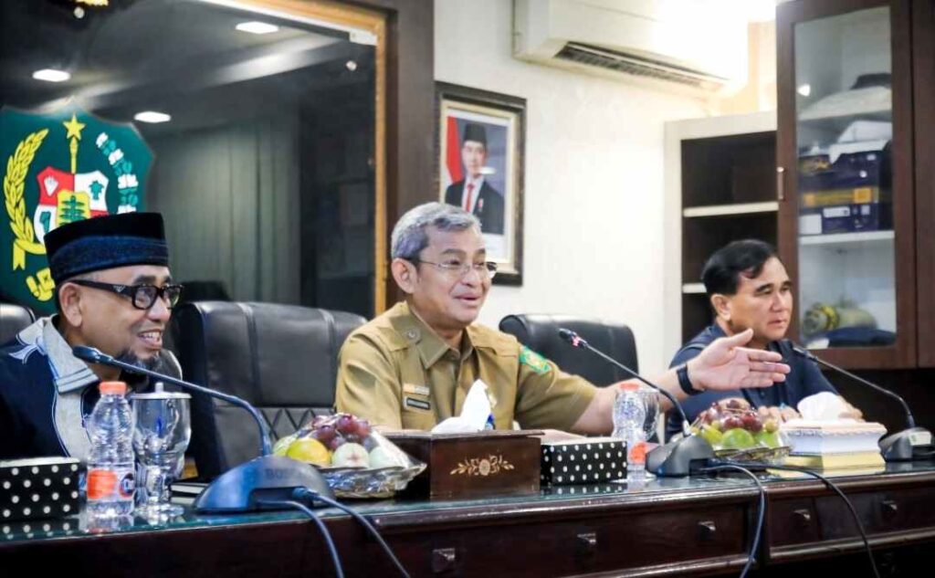 Rombongan Pemko Banda Aceh dipimpin Sekretaris Daerah Kota Banda Aceh, Jalaluddin diterima oleh Wali Kota Medan Rico Tri Putra Bayu Waas, diwakili Sekda Kota Medan Wiriya Alrahman di Balai Kota Medan, Senin (26/1/2026).