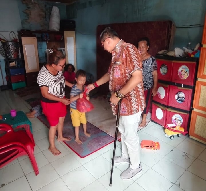 Ketua DPRD Kota Medan Drs Wong Chun Sen Tarigan MPd B kembali membagikan Vitamin dan Susu kepada anak Bayi Lima Tahun (Balita) yang diketahui menderita penyakit Stunting, Sabtu (16/8/2025).