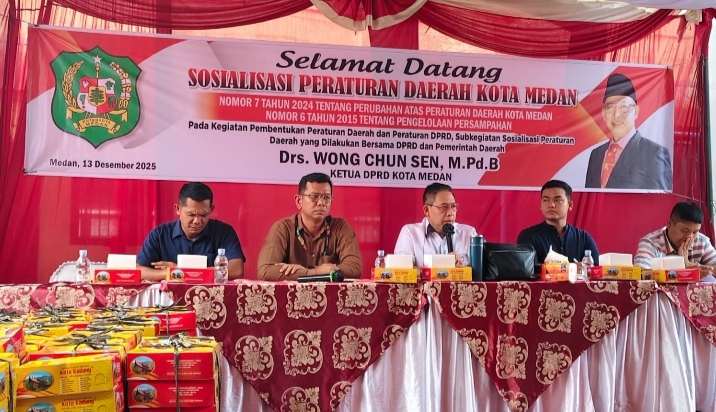 Ketua DPRD Kota Medan Wong Chun Sen, turun langsung ke tengah masyarakat untuk mensosialisasikan Peraturan Daerah (Perda) Kota Medan Nomor 7 Tahun 2024 tentang perubahan atas Perda Nomor 6 Tahun 2015 mengenai Pengelolaan Persampahan. Kegiatan tersebut digelar di Jalan Pendidikan No. 20, Kelurahan Glugur Darat I, Kecamatan Medan Timur, Sabtu (13/12/2025).