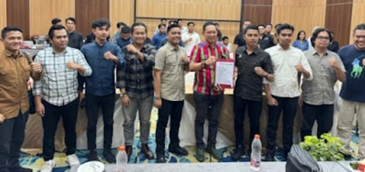 Ketua DPRD Kota Medan Drs Wong Chun Sen MPd B menerima aspirasi sejumlah elemen mahasiswa yang tergabung dalam Cipayung Plus Kota Medan di Hotel Grand Inna Medan, Rabu (03/09/2025).