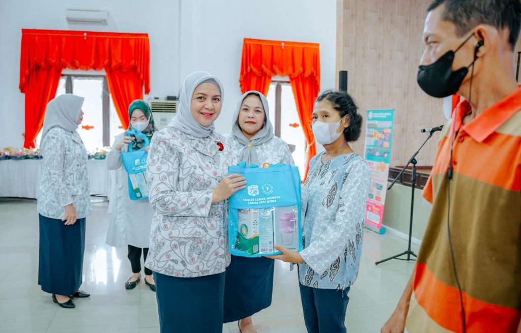Bantuan ini diserahkan secara simbolis oleh Ketua YKI Cabang Kota Medan Ny Kahiyang Ayu M Bobby Afif Nasution diwakili Sekretaris YKI Cabang Kota Medan Ny Ismiralda Wiriya Alrahman kepada penyintas kanker di Gedung Serbaguna TP PKK Kota Medan, Rabu (27/12/2023).