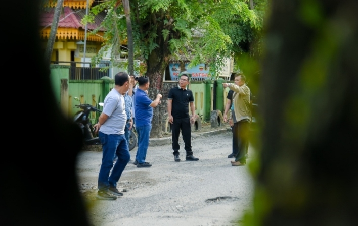 Wakil Walikota Medan, Zakiyuddin Harahap meninjau langsung Jalan Setiabudi Baru Kelurahan Helvetia Timur, Kecamatan Medan Helvetia, yang kondisinya berlobang-lobang, Sabtu (26/4/2025).